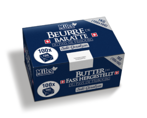Nos beurres doux et demi-sel au sel des Alpes de la Saline de Bex sont également disponibles en portions de 10g pour les restaurants ainsi que pour l’hôtellerie.