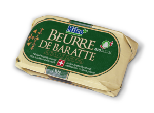 Le beurre Milco se caractérise par l’arôme typique du beurre à l’ancienne. Une maturation lente de la crème par des ferments lactiques sélectionnés permet de retrouver le véritable goût d’antan. Ce beurre de choix est fabriqué en baratte et est moulé selon la méthode traditionnelle.